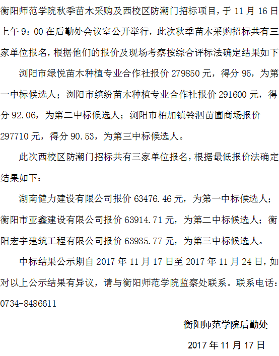 雷竞技raybet登录入口秋季苗木采购及西校区防潮门招标中标结果公示