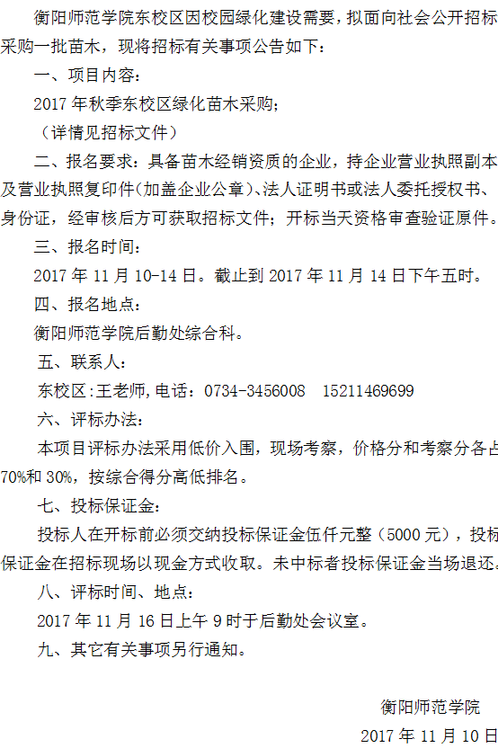 雷竞技raybet登录入口东校区2017年秋季绿化苗木采购招标公告